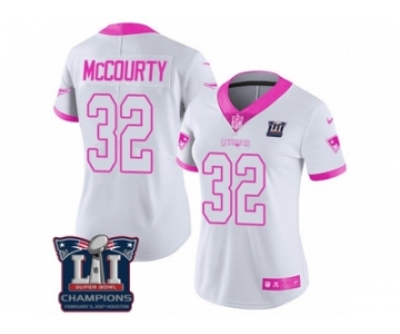 Women's Nike New England Patriots #32 Devin McCourty Limited White Pink Rush Fashion Super Bowl LI Champions NFL Jersey