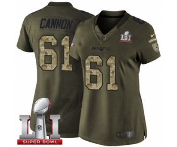 Women's Nike New England Patriots #61 Marcus Cannon Limited Green Salute to Service Super Bowl LI 51 NFL Jersey