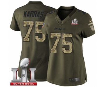 Women's Nike New England Patriots #75 Ted Karras Limited Green Salute to Service Super Bowl LI 51 NFL Jersey