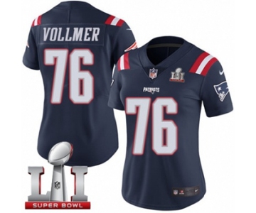 Women's Nike New England Patriots #76 Sebastian Vollmer Limited Navy Blue Rush Super Bowl LI 51 NFL Jersey