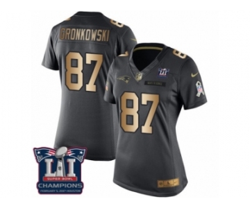 Women's Nike New England Patriots #87 Rob Gronkowski Limited Black Gold Salute to Service Super Bowl LI Champions NFL Jersey