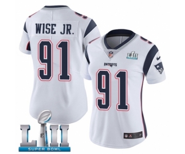 Women's Nike New England Patriots #91 Deatrich Wise Jr White Vapor Untouchable Limited Player Super Bowl LII NFL Jersey