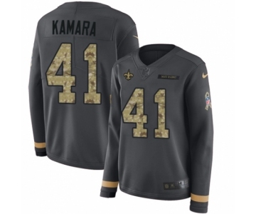 Women's Nike New Orleans Saints #41 Alvin Kamara Limited Black Salute to Service Therma Long Sleeve NFL Jersey