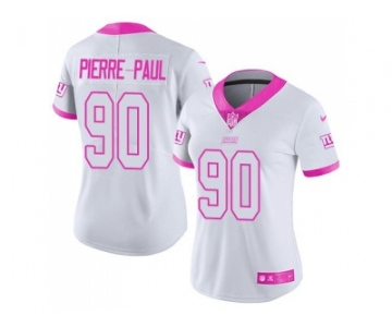 Women's Nike New York Giants #90 Jason Pierre-Paul White Pink Stitched NFL Limited Rush Fashion Jersey