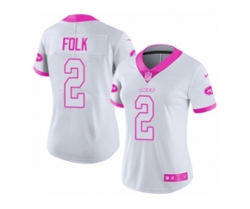 Women's Nike New York Jets #2 Nick Folk Limited White Pink Rush Fashion NFL Jersey