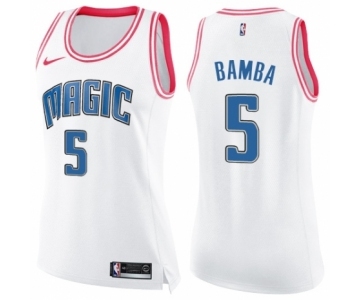 Women's Nike Orlando Magic #5 Mohamed Bamba Swingman White Pink Fashion NBA Jersey