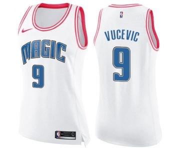 Women's Nike Orlando Magic #9 Nikola Vucevic Swingman White Pink Fashion NBA Jersey