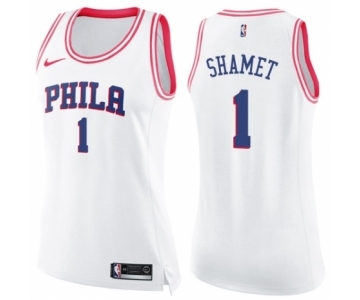 Women's Nike Philadelphia 76ers #1 Landry Shamet Swingman White Pink Fashion NBA Jersey