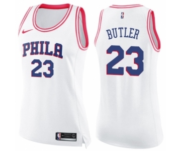 Women's Nike Philadelphia 76ers #23 Jimmy Butler Swingman White Pink Fashion NBA Jersey