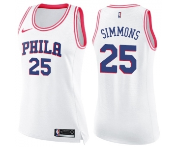 Women's Nike Philadelphia 76ers #25 Ben Simmons Swingman White Pink Fashion NBA Jersey