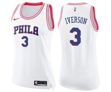 Women's Nike Philadelphia 76ers #3 Allen Iverson Swingman White Pink Fashion NBA Jersey