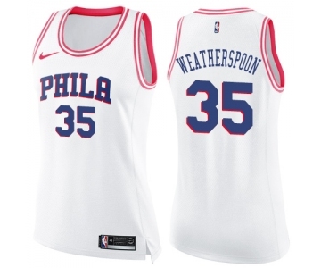 Women's Nike Philadelphia 76ers #35 Clarence Weatherspoon Swingman White Pink Fashion NBA Jersey