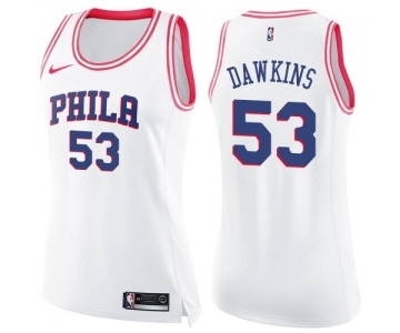 Women's Nike Philadelphia 76ers #53 Darryl Dawkins Swingman White Pink Fashion NBA Jersey