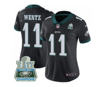 Womens Nike Philadelphia Eagles #11 Carson Wentz Black Alternate Super Bowl LII Champions Stitched NFL Vapor Untouchable Limited Jersey