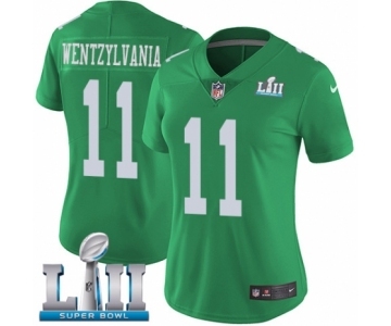 Women's Nike Philadelphia Eagles #11 Carson Wentz Limited Green Rush Vapor Untouchable Wentzylvania Super Bowl LII NFL Jersey