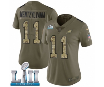 Women's Nike Philadelphia Eagles #11 Carson Wentz Limited Olive Camo 2017 Salute to Service Wentzylvania Super Bowl LII NFL Jerse