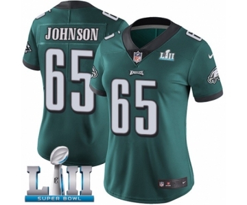 Women's Nike Philadelphia Eagles #65 Lane Johnson Midnight Green Team Color Vapor Untouchable Limited Player Super Bowl LII NFL Jersey