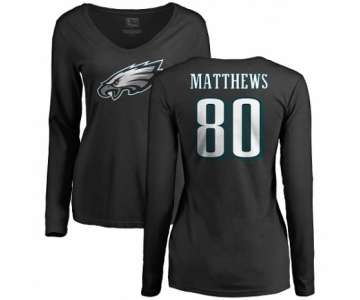 Women's Nike Philadelphia Eagles #80 Jordan Matthews Black Name & Number Logo Slim Fit Long Sleeve T-Shirt.