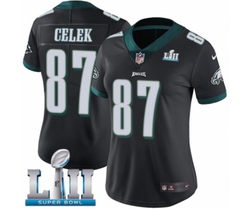 Women's Nike Philadelphia Eagles #87 Brent Celek Black Alternate Vapor Untouchable Limited Player Super Bowl LII NFL Jersey