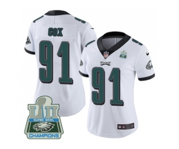 Womens Nike Philadelphia Eagles #91 Fletcher Cox White Super Bowl LII Champions Stitched NFL Vapor Untouchable Limited Jersey