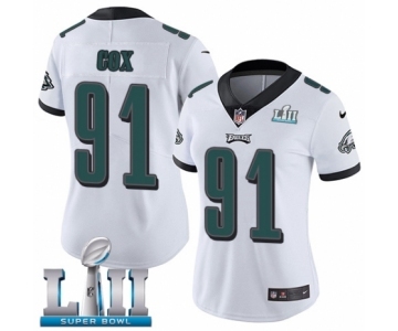 Women's Nike Philadelphia Eagles #91 Fletcher Cox White Vapor Untouchable Limited Player Super Bowl LII NFL Jersey