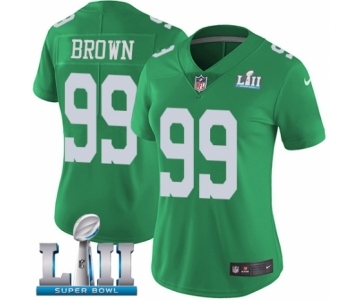 Women's Nike Philadelphia Eagles #99 Jerome Brown Limited Green Rush Vapor Untouchable Super Bowl LII NFL Jersey