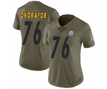 Women's Nike Pittsburgh Steelers #76 Chukwuma Okorafor Limited Olive 2017 Salute to Service NFL Jersey