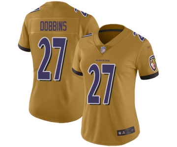 Women's Nike Ravens #27 J.K. Dobbins Gold Stitched NFL Limited Inverted Legend Jersey