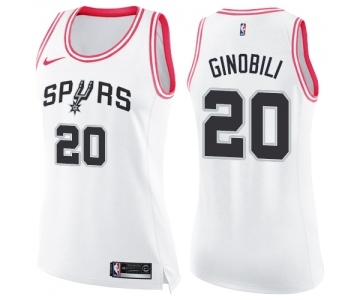 Women's Nike San Antonio Spurs #20 Manu Ginobili Swingman White Pink Fashion NBA Jersey
