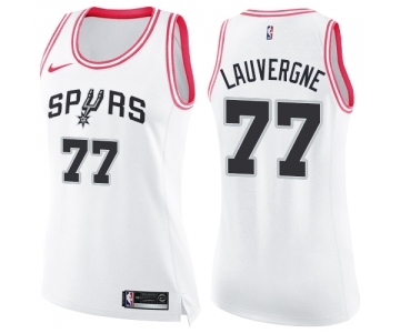 Women's Nike San Antonio Spurs #77 Joffrey Lauvergne Swingman White Pink Fashion NBA Jersey