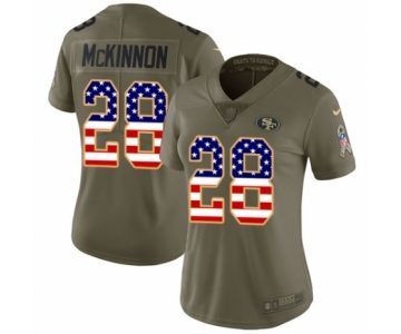 Women's Nike San Francisco 49ers #28 Jerick McKinnon Limited Olive USA Flag 2017 Salute to Service NFL Jersey