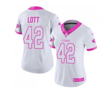Women's Nike San Francisco 49ers #42 Ronnie Lott White Pink Stitched NFL Limited Rush Fashion Jersey