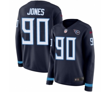 Women's Nike Tennessee Titans #90 DaQuan Jones Limited Navy Blue Therma Long Sleeve NFL Jersey