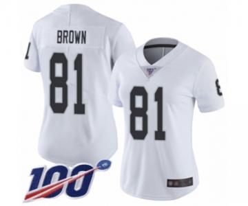 Women's Oakland Raiders #81 Tim Brown White Vapor Untouchable Limited Player 100th Season Football Jersey