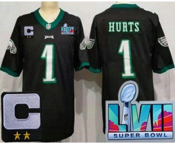 Your Position: Home>NIKE NFL Jerseys>Nike Philadelphia Eagles>nike women>Women's Philadelphia Eagles #1 Jalen Hurts Limited Black C Patch Super Bowl LVII Vapor Jersey