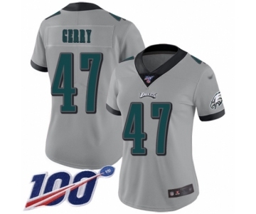 Women's Philadelphia Eagles #47 Nate Gerry Limited Silver Inverted Legend 100th Season Football Jersey