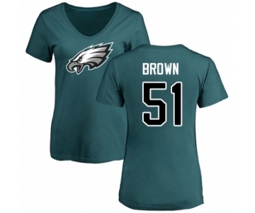 Women's Philadelphia Eagles #51 Zach Brown Green Name & Number Logo Slim Fit T-Shirt
