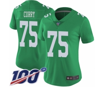Women's Philadelphia Eagles #75 Vinny Curry Limited Green Rush Vapor Untouchable 100th Season Football Jersey