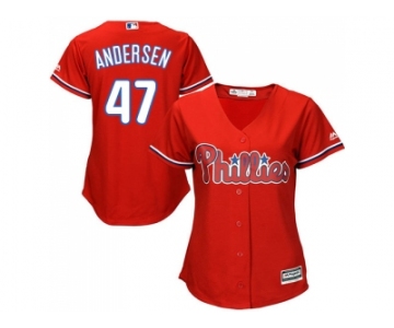 Women's Philadelphia Phillies #47 Larry Andersen Red Alternate Stitched MLB Jersey