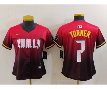Women's Philadelphia Phillies #7 Trea Turner Red 2024 City Connect Limited Jersey