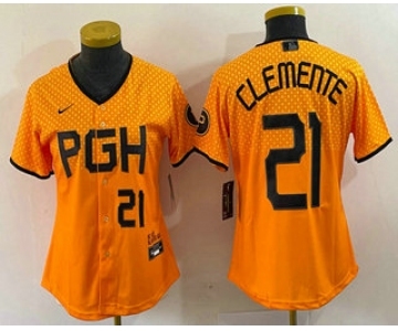 Women's Pittsburgh Pirates #21 Roberto Clemente Yellow 2023 City Connect Stitched Jersey