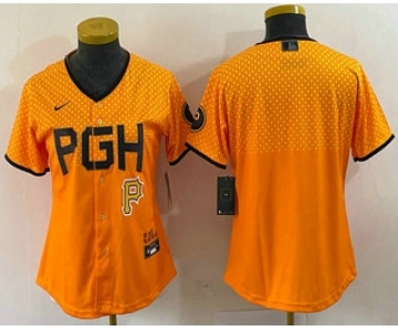 Your Position: Home>NIKE MLB Jerseys>Pittsburgh Pirates>Women>Women's Pittsburgh Pirates Blank Clemente Yellow 2023 City Connect Stitched Jersey