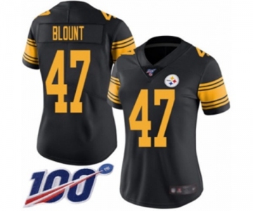 Women's Pittsburgh Steelers #47 Mel Blount Limited Black Rush Vapor Untouchable 100th Season Football Jersey