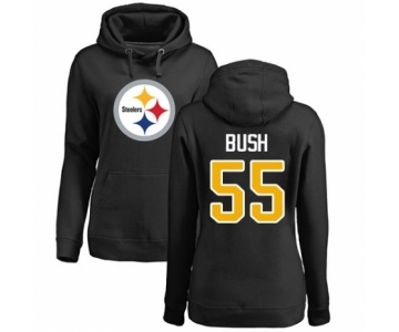 Women's Pittsburgh Steelers #55 Devin Bush Black Name & Number Logo Pullover Hoodie