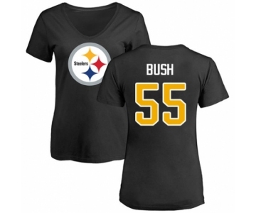 Women's Pittsburgh Steelers #55 Devin Bush Black Backer Slim Fit T-Shirt