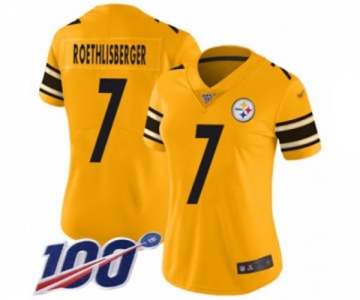 Women's Pittsburgh Steelers #7 Ben Roethlisberger Limited Gold Inverted Legend 100th Season Football Jersey