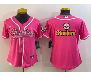 Women's Pittsburgh Steelers Pink Team Big Logo With Patch Cool Base Stitched Baseball Jersey