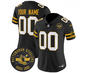 Women's Pittsburgh Steelers Throwback Customized 80th Gold Black Alternate Jersey