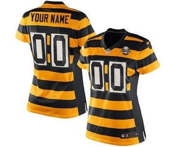 Your Position: Home>NIKE NFL Jerseys>NFL Customized Jersey>Pittsburgh Steelers>Women Jersey>Women's Pittsburgh Steelers Throwback Customized 80th Gold Black Alternate Jersey