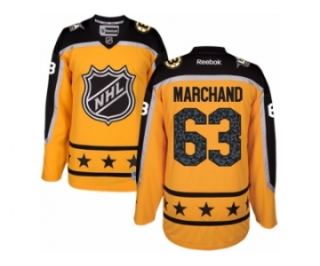 Women's Reebok Boston Bruins #63 Brad Marchand Authentic Yellow Atlantic Division 2017 All-Star NHL Jersey